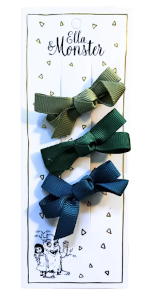 Hårspænde Sæt - Grønne Sløjfer - Ella & Monster